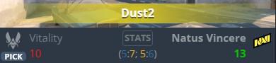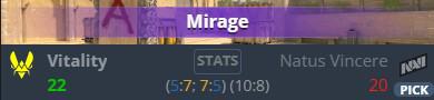 VIT 5-1开局★,随后比赛完全进入李神的进攻节奏当,NAVI连下6分在上半场逆转了比分。下半场两队再次进入拉锯战,小蜜蜂10-9领先后两队互相打出下饭操作,VIT屡现便秘进攻,面对小蜜蜂的干拉w0nderful警家大狙致命空枪还以颜色,亲手葬送好局★。